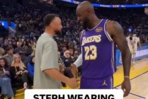 赛后,詹姆斯接受了记者采访。谈到库里今天穿自己的球鞋,他说道:“我的意思是,他是有史以来最伟大的球员之一。他穿了我的球鞋,这真是太酷了。我今天看到了照片,他去克利夫兰穿着我的第一款签名球鞋,然后今天又穿上了10代。这真的非常特别。”